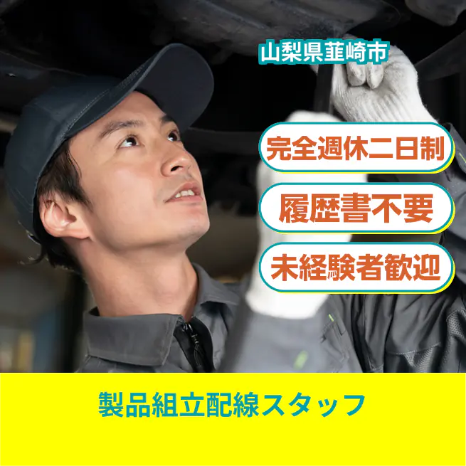 給与詳細 月収例 224,250円 時給例 1,150円 勤務地 山梨県韮崎市 仕事内容 【製品組立配線スタッフ】