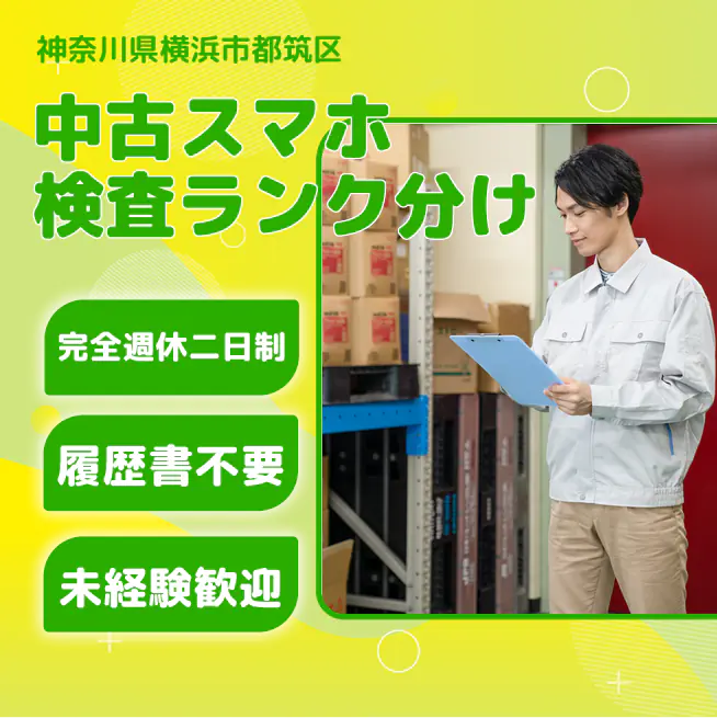 給与詳細 月収例 200,000円 日給例 10,000円 勤務地 神奈川県横浜市都筑区 仕事内容 【中古スマホ検査ランク分け】