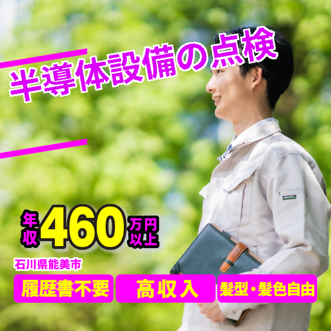 給与詳細 年収例 4,320,000円 月収例 360,000円 勤務地 石川県能美市 仕事内容 半導体関連の設備メンテナンス及び付帯機器の点検、
