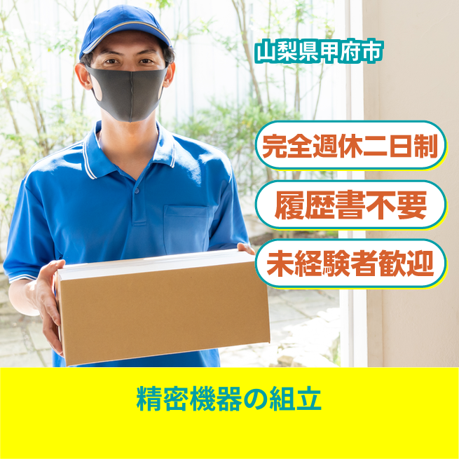 給与詳細 月収例 243,750円 日給例 10,000円 勤務地 山梨県甲府市 仕事内容 精密機器の組立、運搬、検