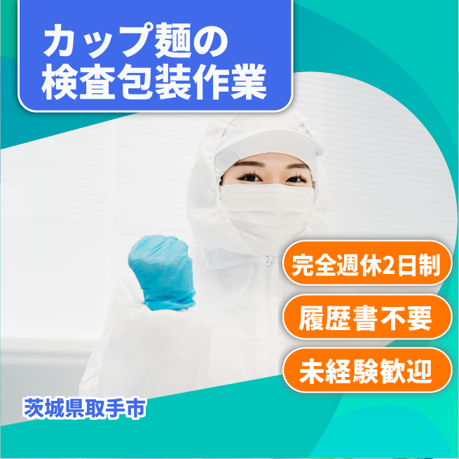 給与詳細 月収例 230,000円 日給例 11,500円 勤務地 茨城県取手市 仕事内容 カップ麺の具材に異物が無いか、カップの中に具材が全て入っているかの目視検査、カップ麺の具材トッピングなどのお仕事です。