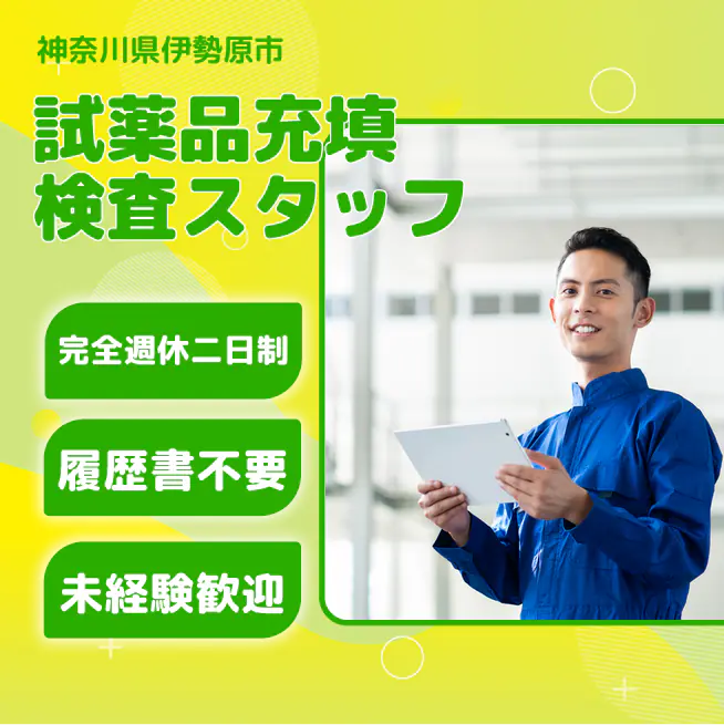 給与詳細 月収例 253,500円 日給例 10,400円 勤務地 神奈川県伊勢原市 仕事内容 【試薬品充填検査スタッフ】