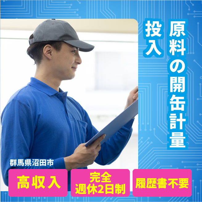 給与詳細 月収例 263,250円 日給例 10,800円 勤務地 群馬県沼田市 仕事内容 【業務内容】