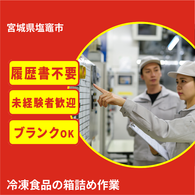 給与詳細 月収例 189,000円 時給例 1,130円 勤務地 宮城県塩竈市 仕事内容 【業務内容】冷凍食品の製造作業