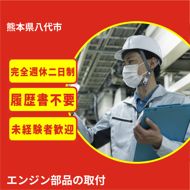 給与詳細 月収例 230,000円 日給例 11,500円 勤務地 熊本県八代市 仕事内容 ゆったりとしたスピードで流れてくるエンジン部品に専用工具を使用し部品を取り付けていく作業です。