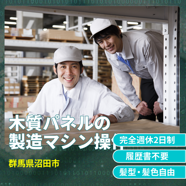 給与詳細 月収例 263,250円 日給例 10,800円 勤務地 群馬県沼田市 仕事内容 住宅用木質パネルの製造機械オペレーター業務