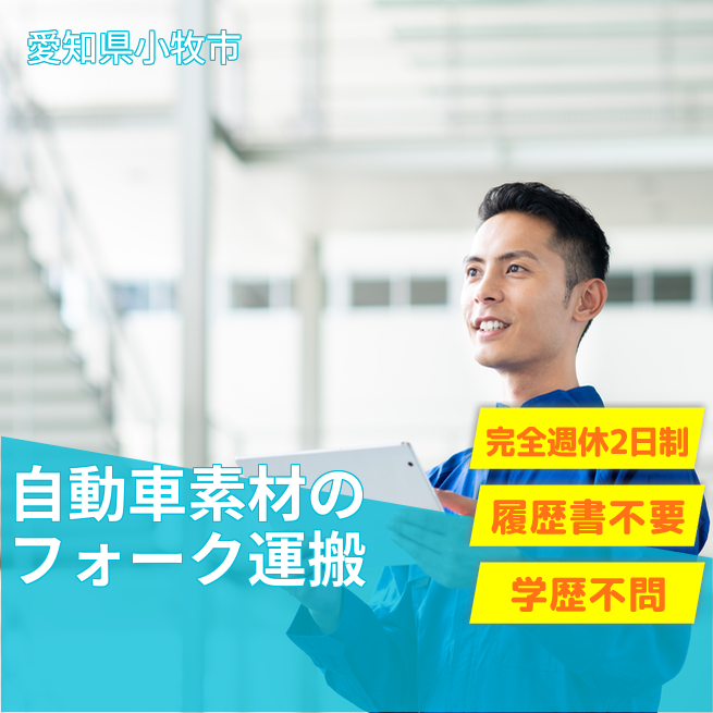 給与詳細 月収例 292,500円 日給例 12,000円 勤務地 愛知県小牧市 仕事内容 自動車部品の素材を作っている工場でフォークリフトに乗り運搬するお仕事