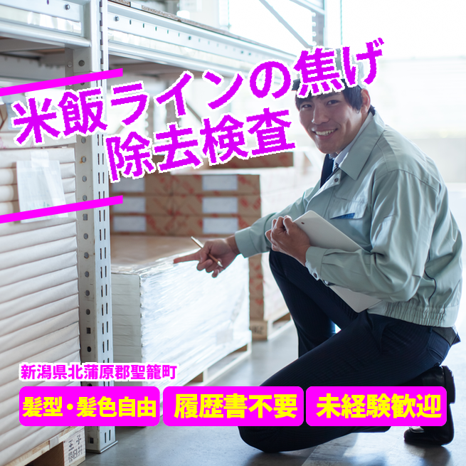 給与詳細 月収例 263,250円 日給例 10,800円 勤務地 新潟県北蒲原郡聖籠町 仕事内容 米飯の目視検査