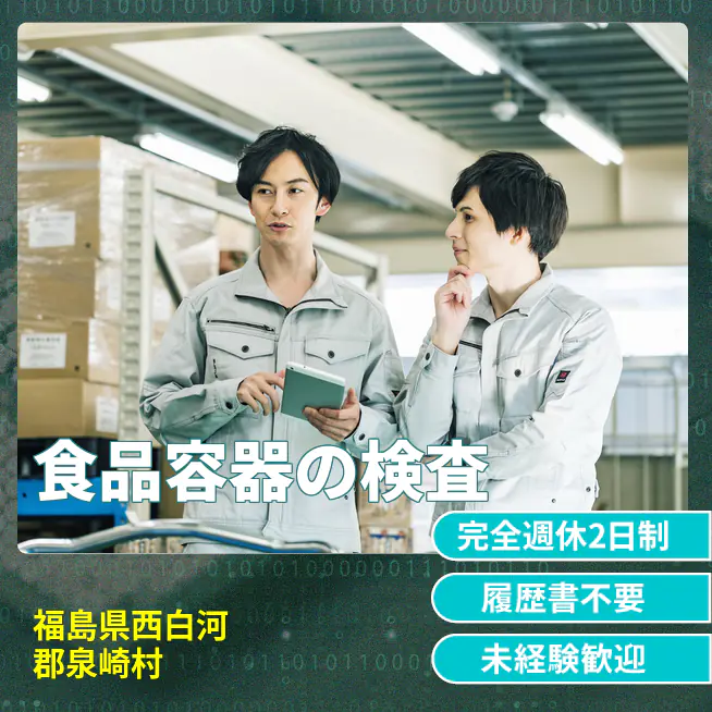 給与詳細 月収例 206,000円 日給例 10,300円 勤務地 福島県西白河郡泉崎村 仕事内容 プラスチック食品容器の検査、梱包