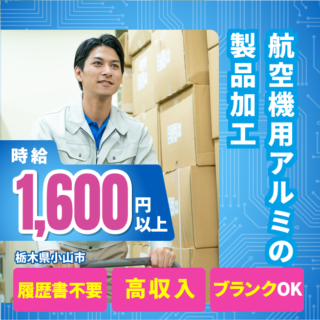 給与詳細 月収例 300,000円 時給例 1,650円 勤務地 栃木県小山市 仕事内容 ◆アルミ製品の切削・加工・検査・マシンオペレーター業務