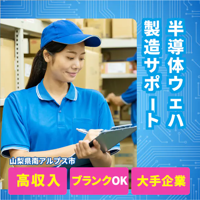 給与詳細 月収例 292,500円 日給例 12,000円 勤務地 山梨県南アルプス市 仕事内容 【快適環境】クリーンルーム勤務★シフト休み&制服貸与/好条件