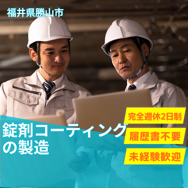 給与詳細 月収例 284,000円 日給例 14,200円 勤務地 福井県勝山市 仕事内容 錠剤などの表面にフィルムコーティングを行う部署で、薬液の仕込みやコーティング機械の操作、機械部品や容器の清掃・洗浄、部品のサイズ計測などを行います。