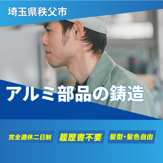 給与詳細 年収例 4,212,000円 月収例 351,000円 勤務地 埼玉県秩父市 仕事内容 アルミニウム及びダイカスト製品の鋳造、金型メンテナンス、バリ取り、洗浄