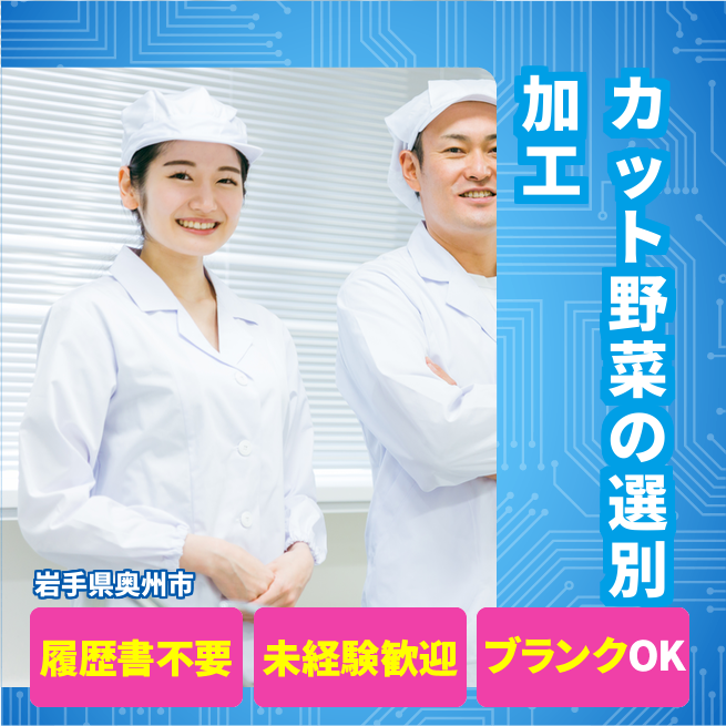 給与詳細 月収例 160,000円 時給例 1,060円 勤務地 岩手県奥州市 仕事内容 【業務内容】