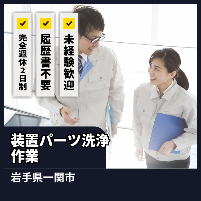 給与詳細 月収例 254,000円 日給例 12,700円 勤務地 岩手県一関市 仕事内容 【業務内容】