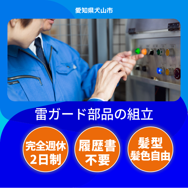 給与詳細 月収例 220,000円 日給例 11,000円 勤務地 愛知県犬山市 仕事内容 電柱の上についている変圧器・開閉器の組立をしたり、組立に必要な部品を必要なタイミングで作業者に渡したり(配膳)、製品の塗装をしたりしていただきます。