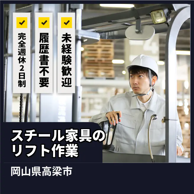 給与詳細 月収例 243,750円 日給例 10,000円 勤務地 岡山県高梁市 仕事内容 【業務内容】