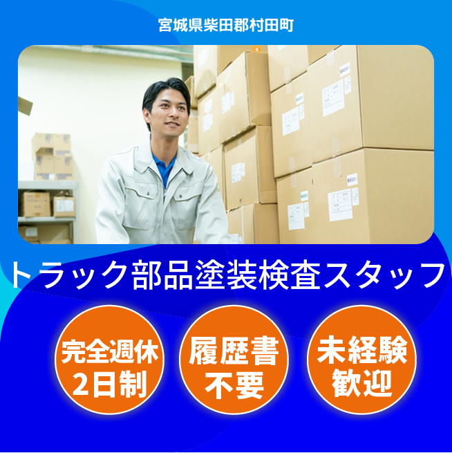 給与詳細 月収例 270,000円 日給例 13,500円 勤務地 宮城県柴田郡村田町 仕事内容 【トラック部品塗装検査スタッフ】