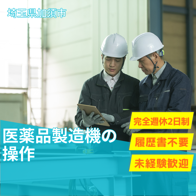 給与詳細 月収例 220,000円 日給例 11,000円 勤務地 埼玉県加須市 仕事内容 医薬品の製造機械操作と製造機械への原材料投入の作業です。クリーンルーム内作業となります。