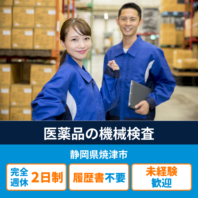 給与詳細 月収例 220,000円 日給例 11,000円 勤務地 静岡県焼津市 仕事内容 クリーンルーム内にて、点滴製造機械の操作および監視業務を担当していただきます。