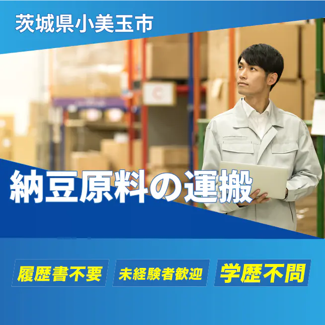 納豆原材料の運搬。台車移動が中心ですが積み下ろしで体力を使う場面もあります。