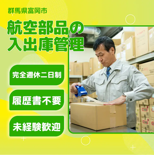 航空部品の梱包と入出庫作業です。