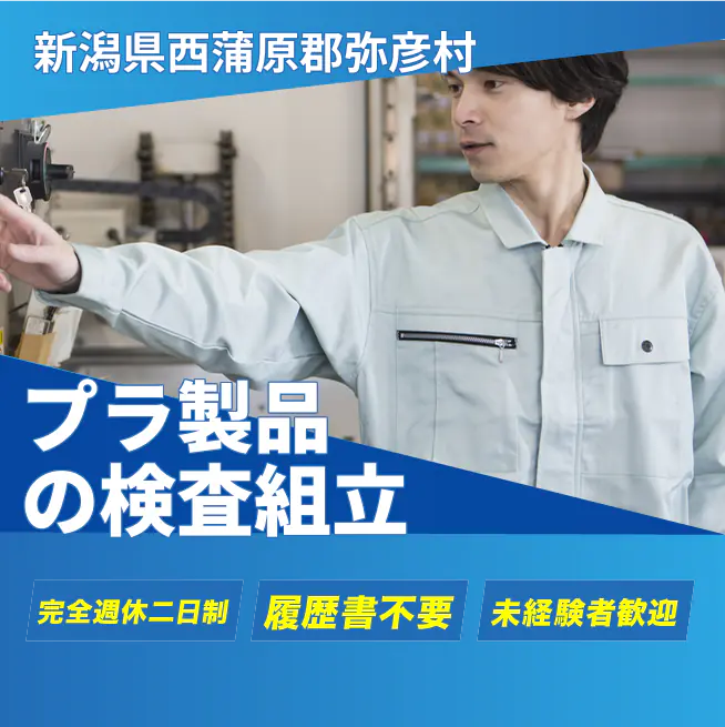 給与詳細 月収例 224,250円 時給例 1,150円 勤務地 新潟県西蒲原郡弥彦村 仕事内容 プラスチック製品の検査・組立・梱包