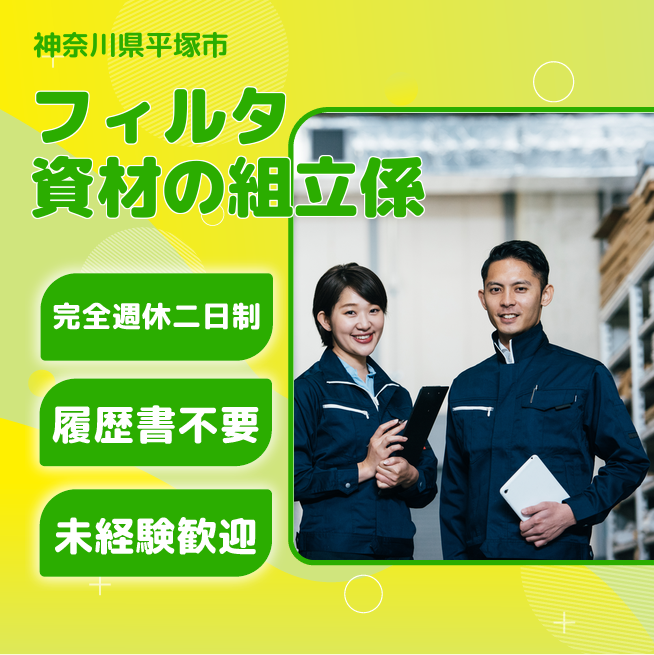 【製品】クリーンルームなどのフィルター【作業内容】フィルタ組立・運搬・機械操作・マシンオペレーター・組立【重量物】20kg未満の物有。大きさは小さいものから大きいものもあり。【座り立ち】両方