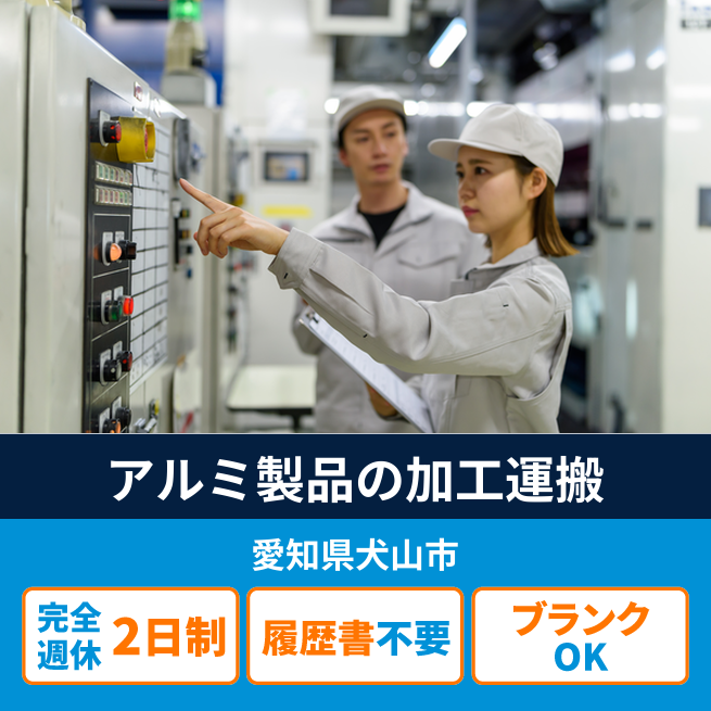 給与詳細 月収例 282,750円 日給例 11,600円 勤務地 愛知県犬山市 仕事内容 アルミ系材料製造及び付随業務。