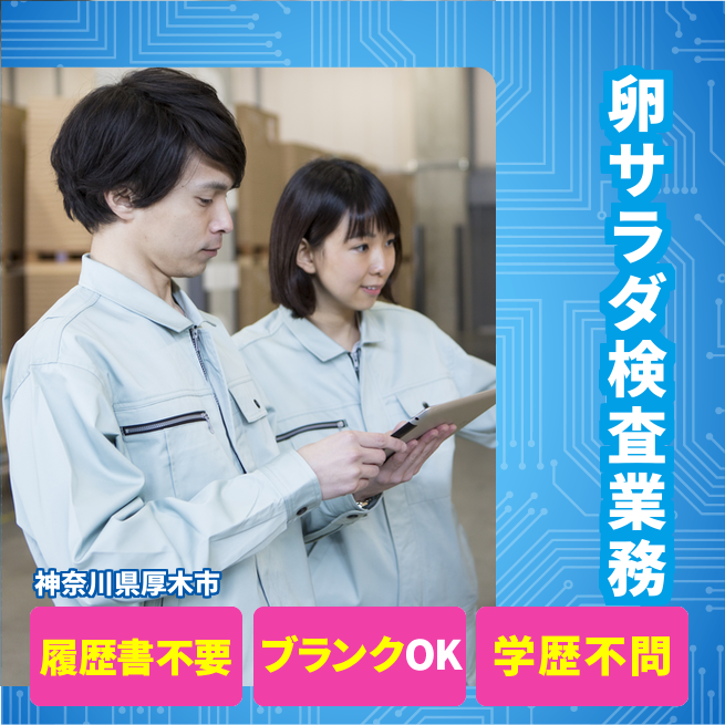給与詳細 月収例 273,000円 日給例 11,200円 勤務地 神奈川県厚木市 仕事内容 【業務内容】卵サラダやマヨネーズドレッシングの品質管理と検査