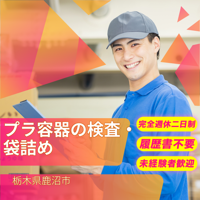 給与詳細 月収例 234,000円 時給例 1,200円 勤務地 栃木県鹿沼市 仕事内容 ・出来上がった製品を目視で検査し、良品を袋詰め・梱包していただくお仕事です。成形機のオペレーターもやっていただきます(検査メイン)