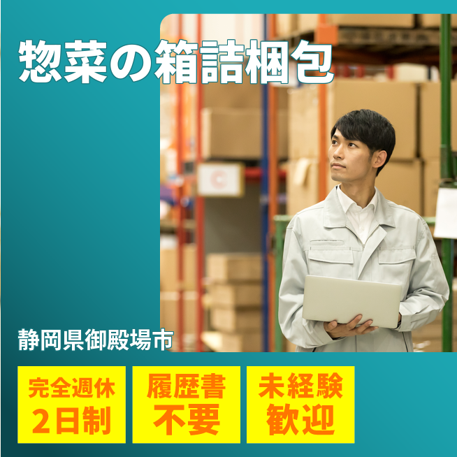 給与詳細 月収例 247,650円 日給例 10,160円 勤務地 静岡県御殿場市 仕事内容 製品の梱包や目視検査、箱詰め作業。野菜の運搬、投入、混ぜ合わせの作業など行っていただきます。