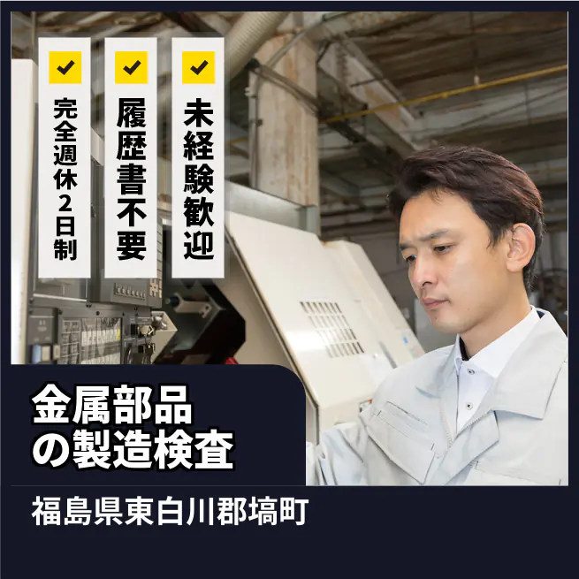 給与詳細 月収例 218,400円 時給例 1,120円 勤務地 福島県東白川郡塙町 仕事内容 金属の小さな部品をつくったり、できあがった製品をチェックしたりする