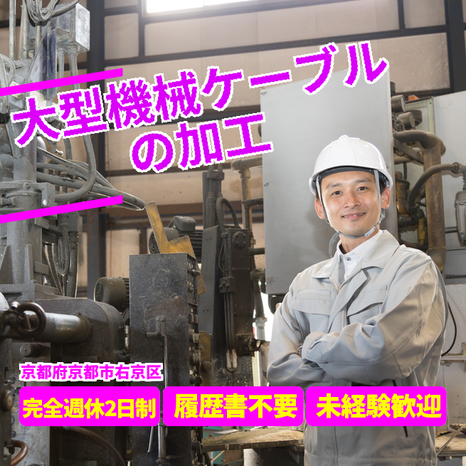 給与詳細 月収例 253,500円 日給例 10,400円 勤務地 京都府京都市右京区 仕事内容 大きな機械を作っている工場で、その部品の一部にケーブルなどを付けたり、