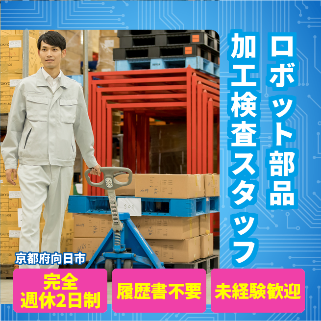給与詳細 月収例 253,500円 日給例 10,400円 勤務地 京都府向日市 仕事内容 【ロボット部品加工検査スタッフ】