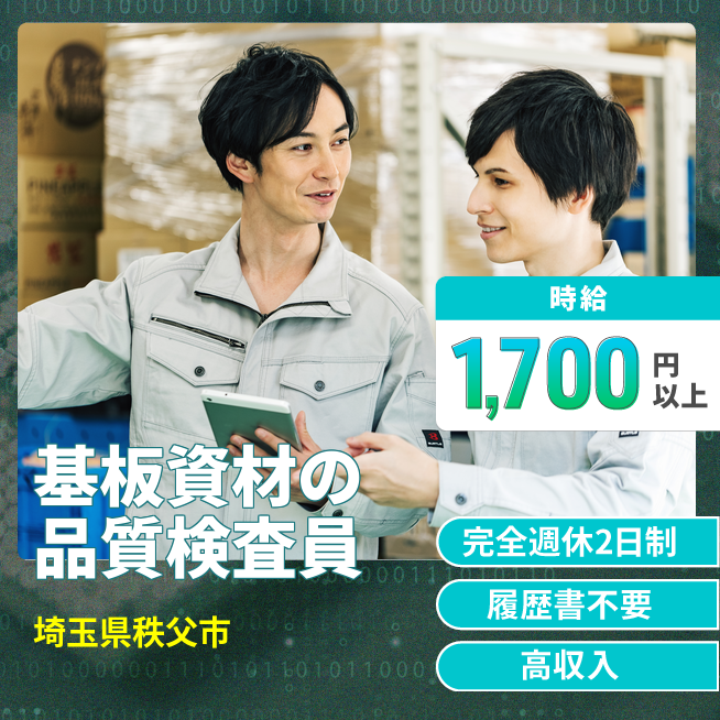 給与詳細 月収例 331,500円 時給例 1,700円 勤務地 埼玉県秩父市 仕事内容 経験を活かせる★土日祝休み×高収入でプライベートも充実/履歴書不要