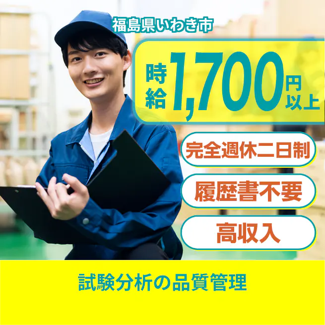 給与詳細 月収例 260,000円 時給例 1,700円 勤務地 福島県いわき市 仕事内容 【業務内容】