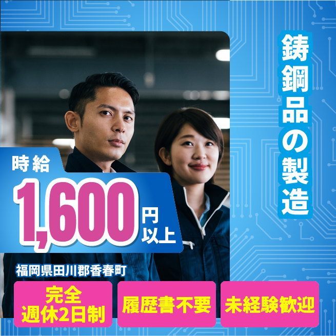 給与詳細 月収例 300,000円 時給例 1,600円 勤務地 福岡県田川郡香春町 仕事内容 【概要】