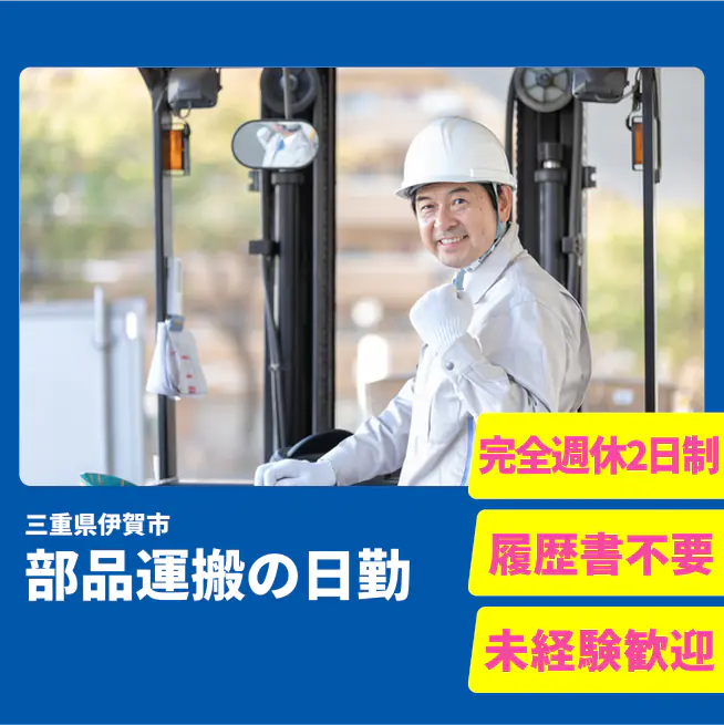 給与詳細 月収例 220,350円 時給例 1,130円 勤務地 三重県伊賀市 仕事内容 人気の日勤勤務!部品を運ぶオシゴト。未経験の方も大歓迎★土日休みでプライベートも充実☆彡
