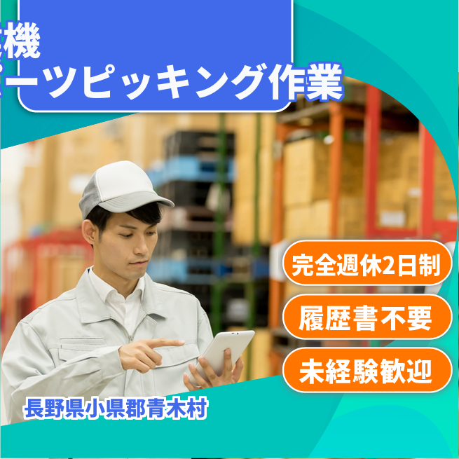 初心者歓迎!建設機械部品のピッキング作業です。複数ある品物を棚から取り組立作業者に渡す動きのあるお仕事です!