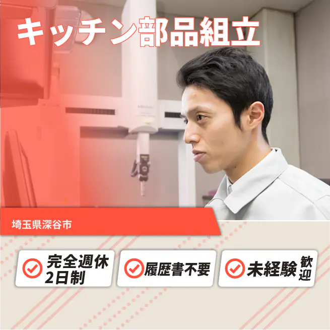 システムキッチン扉部品の組付・ピッキング・梱包。ライン/セル両工程あり。