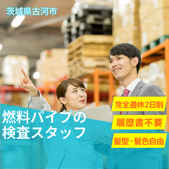 給与詳細 月収例 245,000円 日給例 12,250円 勤務地 茨城県古河市 仕事内容 みずすまし業務 燃料パイプ部品のの外観検査・原料投入、運搬【重量】最大10kg