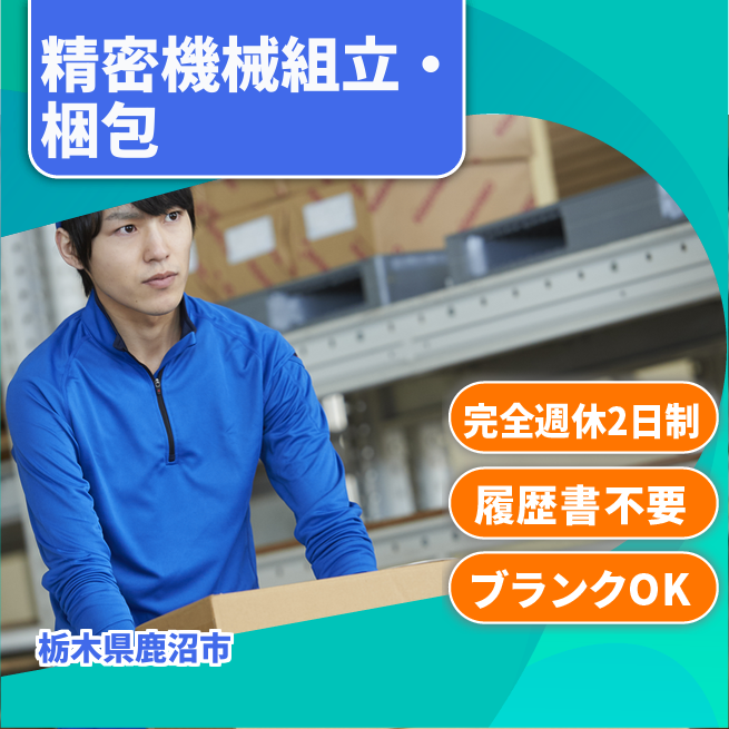 給与詳細 月収例 250,000円 日給例 12,500円 勤務地 栃木県鹿沼市 仕事内容 ・医療機器の加工・運搬・検査業務及びそれに付随する業務