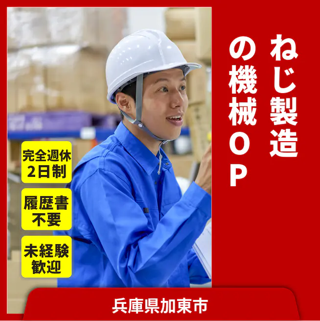 給与詳細 月収例 210,000円 日給例 10,500円 勤務地 兵庫県加東市 仕事内容 自動車・建機関係向けへの接着剤が塗布されたネジの製造を行う機械オペレーター業務。