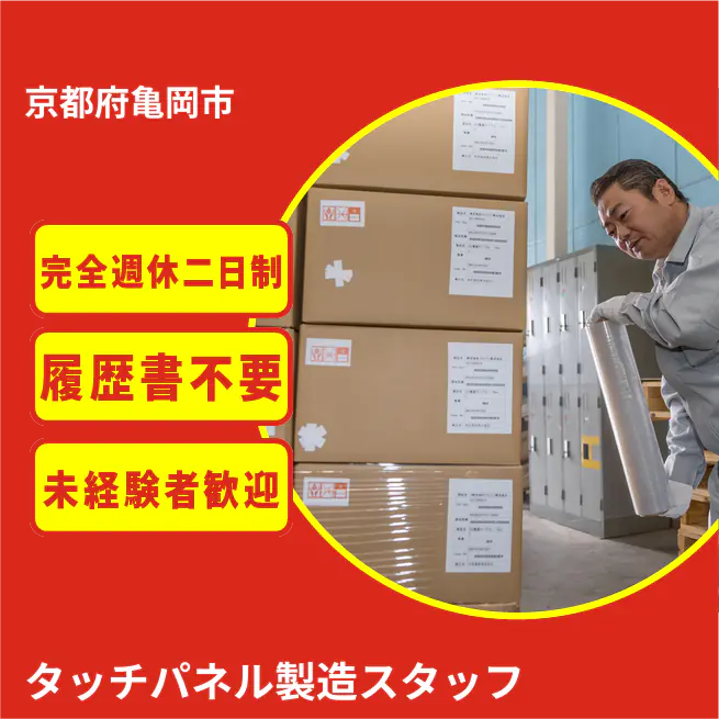 給与詳細 月収例 253,500円 日給例 10,400円 勤務地 京都府亀岡市 仕事内容 【タッチパネル製造スタッフ】