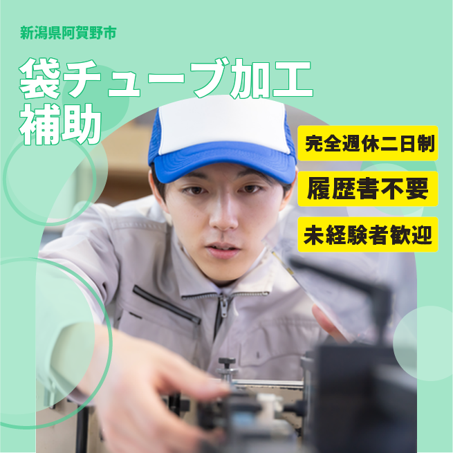 袋チューブ加工機のオペレーター補助です。