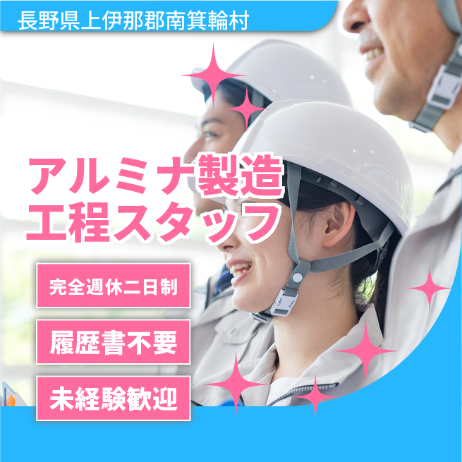 給与詳細 月収例 234,000円 時給例 1,200円 勤務地 長野県上伊那郡南箕輪村 仕事内容 【アルミナ製造工程スタッフ】