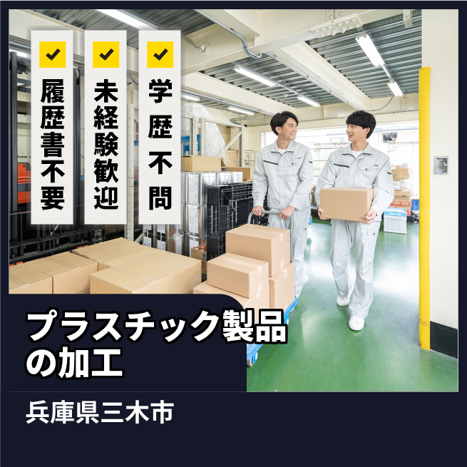 ◆試用期間あり(14日間) 公開日 2024年02月01日 主に車のバンパーの一部となるプラスチックシートの製造、加工。また、製品の運搬、機械オペレーター等。25キロの重量物あり