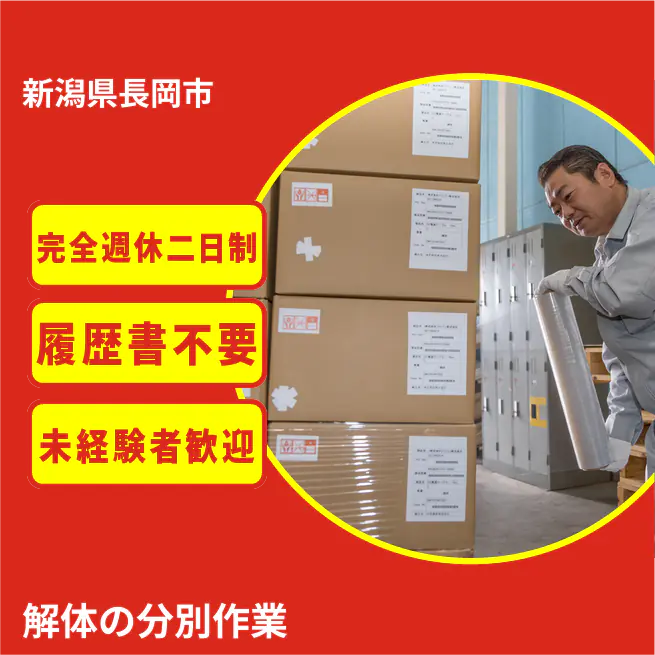 給与詳細 月収例 187,200円 時給例 1,170円 勤務地 新潟県長岡市 仕事内容 エアコンや薄型テレビなどを工具を使って解体し、プラスチックや金属などに分別していくお仕事です!
