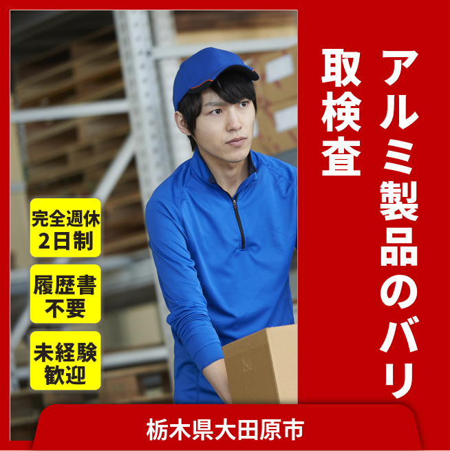 給与詳細 月収例 300,000円 日給例 15,000円 勤務地 栃木県大田原市 仕事内容 アルミ部品を機械にセット、仕上げや加工作業等